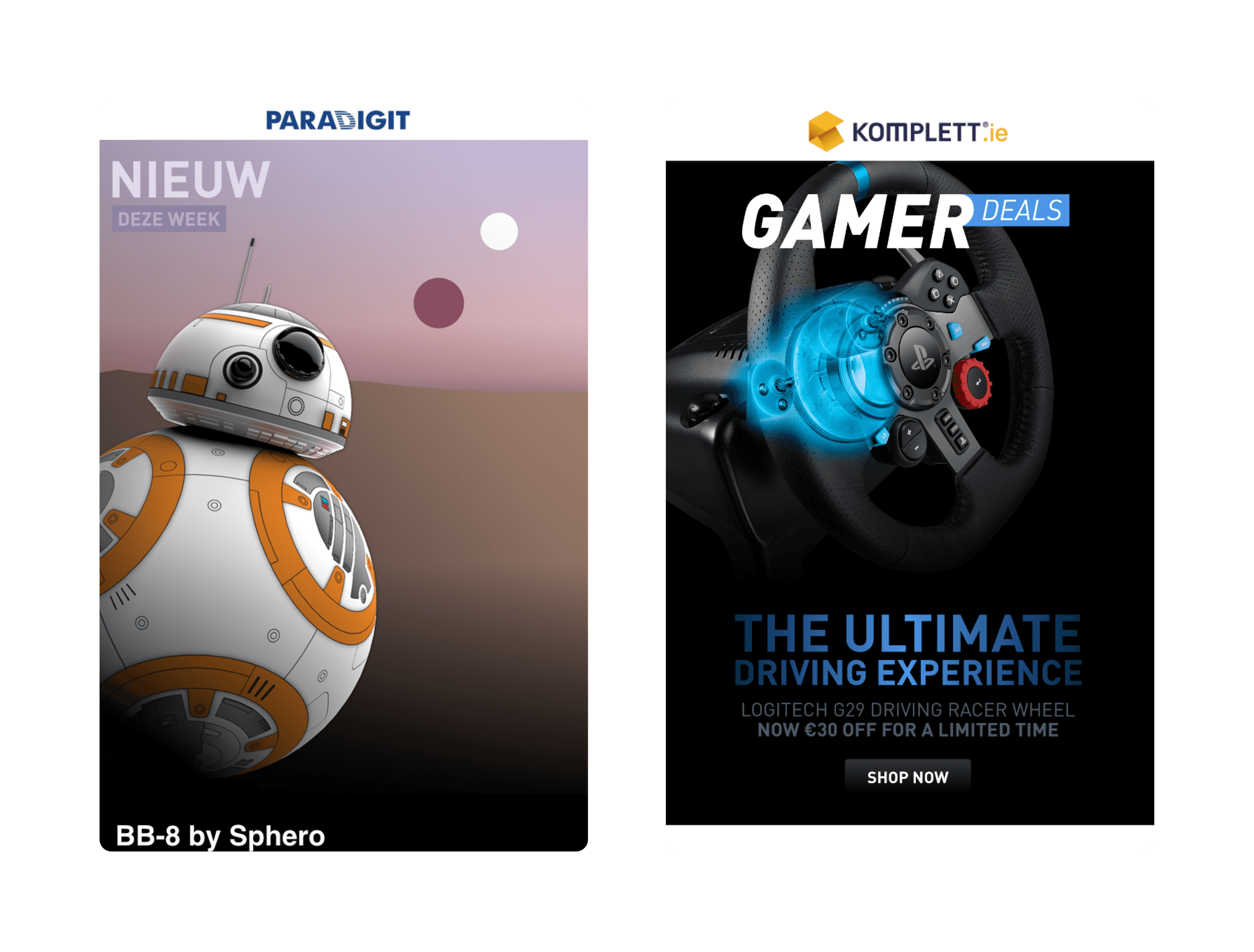 I started out at Paradigit being responsible for designing their Irish and Dutch email campaigns. Over time, I moved more closely into working with their UX/Web Team. I worked on these graphics and email templates in 2014.