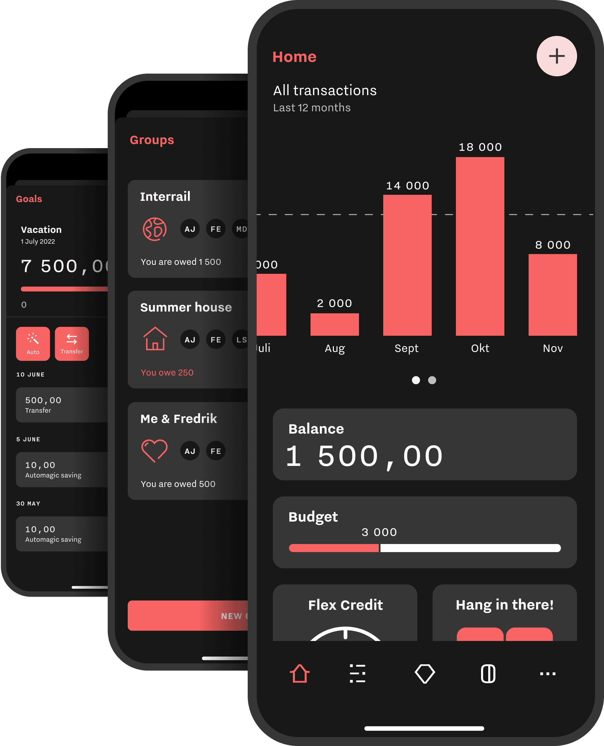 The solution was P.F.C. —an entirely new type of mobile banking product, tailored to younger demographics in The Nordics. P.F.C. began with a focus on simple features such as bill splitting —aimed at simplifying financial interactions among peers (a common pain point for the target users).